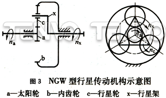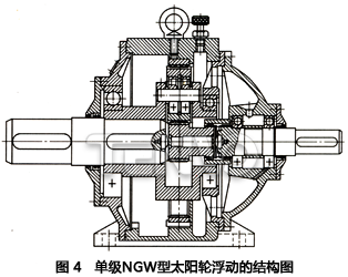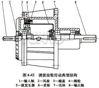 球閥、蝶閥和閘閥上,但傳動(dòng)效率低,外形尺寸較大。②蝸桿、直齒圓柱齒輪二級(jí)傳動(dòng)一采用蝸桿和直齒圓柱齒輪二級(jí)傳動(dòng)裝置來減速,如圖2所示。第一級(jí)蝸桿減速后,再用直齒圓柱齒輪作第二級(jí)減速,可增大速比(i=60~120)輸出轉(zhuǎn)矩亦增加了,結(jié)構(gòu)比較簡(jiǎn)單,但傳動(dòng)效率較低,外形尺寸大。③行量齒輪傳動(dòng)一漸開線齒輪行星傳動(dòng)是一種具有動(dòng)軸線的齒輪傳動(dòng)機(jī)構(gòu),圖3是最常見的形式,可用于減速、增速和差動(dòng)裝置。行星傳動(dòng)的類型,可按組成傳動(dòng)機(jī)構(gòu)的齒輪嚙合方式劃分為NGW型、NW型、ZUWGW型、NN型、NGWN型和N型等(N-內(nèi)嚙合,W-外嚙合、G-公用齒輪、ZU-錐齒輪)圖3為一級(jí)內(nèi)嚙合、一級(jí)外嚙合和內(nèi)外嚙合公用的行星輪所組成的NGW型行星傳動(dòng)機(jī)構(gòu)。采用這種減速裝置,結(jié)構(gòu)緊湊,體積小,質(zhì)量輕,傳動(dòng)速比大(NW型i=1~50、NN型i≤1700、N型i=10~100、NGNG型i≤500),傳動(dòng)效率高,一般使用在小口徑閘閥和截止閥上,也可以用在球閥和蝶閥上。但制造工藝要求較嚴(yán)格。圖4是單級(jí)NGW型太陽輪浮動(dòng)的結(jié)構(gòu)圖。④諧波齒輪傳動(dòng)。圖5所示為諧波齒輪傳動(dòng)的典型結(jié)構(gòu)?;镜臉?gòu)件包括:波發(fā)生器X,剛輪g和作為柔輪的中間件r。波發(fā)生器轉(zhuǎn)動(dòng),迫使柔輪產(chǎn)生彈性變形,并使它的齒與剛輪相互作用,傳遞運(yùn)動(dòng)和力。柔輪變形過程基本上是一個(gè)對(duì)稱的諧波,因此稱為諧波齒輪傳動(dòng)。傳動(dòng)過程中,波發(fā)生器轉(zhuǎn)一圈,柔性輪上某點(diǎn)變形的循環(huán)次數(shù)稱為波數(shù)見。常用的是雙波和三波兩種。雙波傳動(dòng)的柔輪應(yīng)力較小,結(jié)構(gòu)比較簡(jiǎn)單,容易獲得較大的傳動(dòng)比,更為常用。諧波齒輪傳動(dòng)的特點(diǎn)是:傳動(dòng)比大、范圍寬;元件少,體積小,質(zhì)量輕,在相同條件下比一般齒輪減速器的元件少一半,體積和質(zhì)量可減少20%~50%;同時(shí)嚙合的齒數(shù)多,雙波傳動(dòng)在受載情況下同時(shí)嚙合的齒數(shù)可達(dá)總數(shù)的20%~40%,故承載能力高,且誤差可相互補(bǔ)償,故運(yùn)動(dòng)精度高,可采用調(diào)整波發(fā)生器達(dá)到無側(cè)隙嚙合;運(yùn)動(dòng)平穩(wěn);噪聲低;可通過密封壁傳遞運(yùn)動(dòng);傳動(dòng)效率高,i=100時(shí),η=69%~90%,i=400時(shí),η=80%,且傳動(dòng)比大時(shí),效率并不顯著下降。但主要零件柔輪的制造工藝較普通齒輪復(fù)雜。