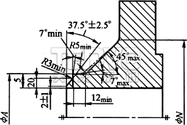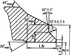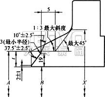 (2)ASME B16·25-2003《對(duì)接焊端》規(guī)定的焊接端過渡區(qū)的最大包給線如圖所示。