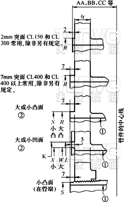 ② 大凹凸面和大榫槽面不適用于CL150,因為有可能存在著尺寸上的矛盾。