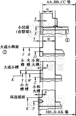 ① 對于小凸面連接,在用這些尺寸時應注意確保管子的內(nèi)徑足夠小,以保證有足夠的支承面以防止擠碎。這特別適用于管端連接的管道,對于小凹凸面連接,螺紋配對法蘭帶平整的平面,螺紋為美國標準鎖緊螺母螺紋(NPSL)。