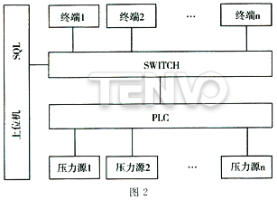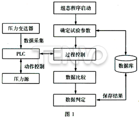 系統(tǒng)由組態(tài)程序啟動(dòng),交互方式設(shè)定基礎(chǔ)參數(shù),PLC啟動(dòng)壓力源并保證試驗(yàn)壓力與保壓時(shí)間,壓力變送器采集的壓力信號(hào)轉(zhuǎn)變?yōu)殡妷褐到?jīng)PLC處理后送處理器分析比較,試驗(yàn)結(jié)束的條件為:試驗(yàn)壓力已低于設(shè)定壓力,或達(dá)到規(guī)定的保壓時(shí)間。試驗(yàn)結(jié)束,系統(tǒng)自動(dòng)整理試驗(yàn)報(bào)告與合格證(針對(duì)出廠試驗(yàn)),保留過(guò)程記錄。程序設(shè)計(jì)中要設(shè)有穩(wěn)壓/補(bǔ)壓模塊,應(yīng)對(duì)管路泄漏。界面設(shè)計(jì)時(shí)應(yīng)考慮基礎(chǔ)參數(shù)的交互干預(yù),并能反寫入數(shù)據(jù)庫(kù),滿足特殊產(chǎn)品與非標(biāo)元件的試壓要求。數(shù)據(jù)庫(kù)系統(tǒng)應(yīng)具備多種數(shù)據(jù)檢索方式,如:產(chǎn)品信息、日期、工號(hào)、工段號(hào)、合同信息等,提供質(zhì)量管理的基本信息。