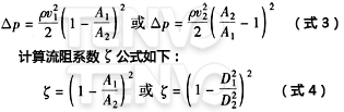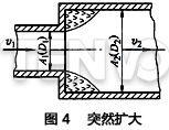 1)突然擴(kuò)大。如圖4所示,如果壓力損失主要是由于流通截面Al突然擴(kuò)大,其計(jì)算公式如下: