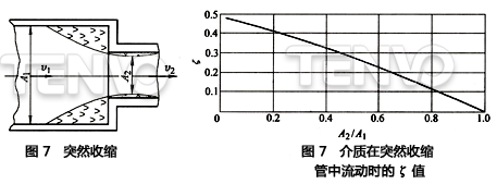 3)突然收縮。如圖7所示,如果已知介質(zhì)的收縮截面是A2,在這種情況下,壓力損失的確定與突然擴(kuò)大時(shí)相似。