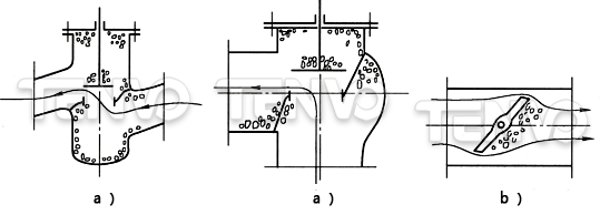 圖10示出幾種調(diào)節(jié)閥的簡(jiǎn)圖和介質(zhì)能量損失的情況。要知道,即使對(duì)于一個(gè)構(gòu)造簡(jiǎn)單的調(diào)節(jié)閥,要想通過(guò)理論計(jì)算得出ζNj值也是不可能的。ζNj值要通過(guò)試驗(yàn)確定。