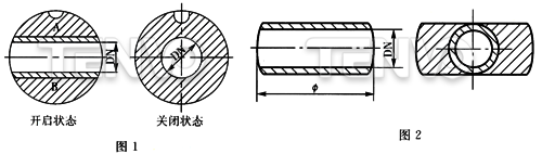 經(jīng)過(guò)分析發(fā)現(xiàn)球形體關(guān)閉件的密封原理原來(lái)是中間的通孔起作用,中孔順時(shí)為通、旋轉(zhuǎn)90??讬M時(shí)為閉。原來(lái)球閥的密封原理不是球在旋轉(zhuǎn),而是球中的管子在旋轉(zhuǎn)即:一根管子繞球閥的中心線做旋轉(zhuǎn),管順則閥開(kāi),管橫則閥閉。其實(shí)球形體只是一個(gè)載體,是通過(guò)球來(lái)載管旋轉(zhuǎn),我們把目前球體關(guān)閉件稱為“球體載管關(guān)閉件”。如圖一所示,在管的上下A、B兩處存在多余的金屬即與密封性能無(wú)關(guān)的金屬。