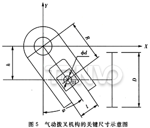 h——?dú)鈩?dòng)裝置輸出軸中心O到活塞桿的垂直距離(mm);