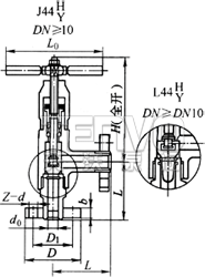 J44H角式截止閥的進(jìn)出口通道不在同一方向上而成90°直角,流體通過(guò)閥門時(shí)會(huì)改變流體方向,因此會(huì)產(chǎn)生一定的壓力降。角式截止閥的最大優(yōu)點(diǎn)是可以把閥門安裝在管路系統(tǒng)的拐角處,這樣既節(jié)約了90°彎頭,又便于操作。因此,這類閥門最適合在化肥廠的合成氨生產(chǎn)系統(tǒng)中和制冷系統(tǒng)中采用。如J44H-160、J44H-320、L44H-160、L44H-320就完全是為合成氨生產(chǎn)系統(tǒng)而設(shè)計(jì)的。
